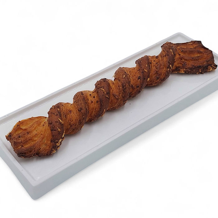 tarwebloem (49.80 %), water (24.28 %), roomboter (melk) (19.43 %), ei (2.91 %), gist (2.43 %), bakkerszout (0.97 %), emulgator(E472e (0.10 %)), plantaardige olie(raapzaad (0.07 %)), tarwemoutmeel, enzymen, kaliumjodide, antiklontermiddel(E535), kleurstof(E160a)